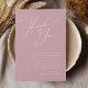 Voici notre magnifique script lunatique | carte de remerciements rose 5"x7" poussiéreux parfait pour votre simple fête de printemps de boho moderne. Notre design élégant comprend une palette de couleurs vives et pastel avec un script de calligraphie vintage et chic. Que vous préfériez un style minimaliste ou classique, notre produit éditable unique offre luxe et élégance, parfait pour créer une touche élégante et romantique qui rendra votre journée spéciale inoubliable. Contactez-nous pour toute question sur le design, et laissez-nous vous aider à faire le mariage de vos rêves.