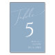 Script Whimsical | Numéro de table bleu Dusty