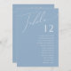 Voici notre magnifique script lunatique | tableau bleu poussiéreux graphique de nombres parfait pour votre simple fête de printemps de boho moderne. Notre design élégant comprend une palette de couleurs vives et pastel avec un script de calligraphie vintage et chic. Que vous préfériez un style minimaliste ou classique, notre produit éditable unique offre luxe et élégance, parfait pour créer une touche élégante et romantique qui rendra votre journée spéciale inoubliable. Contactez-nous pour toute question sur le design, et laissez-nous vous aider à faire le mariage de vos rêves.