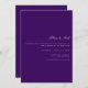 Diese elegante, weiße und lila Hochzeitseinladungskarte bietet modernes Drehbuch und sauberen Text für ein einfaches und stilvolles lila Design, das Sie Liebe. Fügen Sie benutzerdefinierten Text hinzu, um alle zusätzlichen Informationen zu liefern, die für Ihre Gäste benötigt werden. Gerne senden wir Ihnen eine Nachricht mit Fragen zum Thema Design - ich helfe Ihnen gerne!
