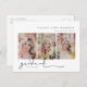 Signature-Skript, 3 Foto-Snapshot, Ankündigung des Abschlusses Postcard. Features, 3 vertikale Portrait-Fotos auf der Vorderseite und schwarze Typografie.