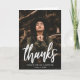 Feiern Sie Ihre Errungenschaft mit diesen trendigen Abschluss Dankeschön-Karten mit Ihrem Foto und einem stilvollen "Dank" in der weißen Schrift Schrift. Personalisieren Sie die Vorderseite dieser gefalteten Karte, indem Sie Ihren Namen und das Abschluss Jahr für eine benutzerdefinierte Touch hinzufügen. Das Innere bietet viel Platz für Ihre getippte oder handgeschriebene Danksagung, sodass Sie Freunden und der Familie einfach Anerkennung zollen können. Ideal für Absolventen, die gewollt haben, modernes Design mit persönlichem Ausdruck zu verbinden, sind diese Foto Abschluss Dankkarten eine denkwürdige Art, um sich für ihre Unterstützung zu bedanken.