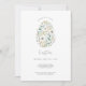 Calligraphie jolie et élégante Invitation de Pâques avec oeufs de Pâques, pétales de verdure et de fleurs en forme d'oeuf de Pâques ainsi que des bandes vert sauge sur le côté inverse.