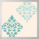 Scroll und Blattdämpfer wiederholen das Design in hellen und aquamarinen Details auf cremefarbenem Hintergrund.