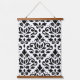 Scroll Damask Large Pattern Black on White Wandteppich Mit Holzrahmen
