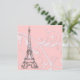 Phantastische französische Einladung mit dem Eiffelturm stehend kräftig vor einem rosa Scroll Hintergrund. Spielen Sie mit Papierfarben, aber denken Sie daran, den rosa Hintergrund zuerst auf weiß zu ändern. Oder lassen Sie den Hintergrund einfach beliebig gewollt werden! Wir bieten dieses niedliche Design in einigen Variationen an.