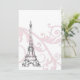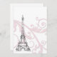 Phantastische französische Einladung mit dem Eiffelturm stehend stark vor einem Hintergrund rosa Rollen. Spielen Sie mit Papierfarben oder Hintergrundfarben. Wir bieten dieses niedliche Design in einigen Variationen an.