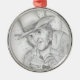 Ebenezer Scrooge ist ein Schwarz-Weiß-Bleistiftskizze in Hut und Jacke.