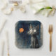 Scruffy Black Alley Cat mit Herbstleaf Pappteller