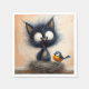 Scruffy mit Augen Katze, die einen Wurm für einen Serviette