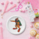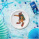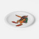 Ein Taucher in einem orangefarbenen Neoprenanzug. Dieses Design wirkt auf diese Paper-Teller sehr effektiv