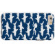 Schwarz-Weiß-Muster zeigen einen furchtlosen Taucher, der in einer Haifischschule schwimmt. Die blaue Hintergrundfarbe ist anpassbar.