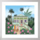 Entspannen Sie in der Zuhause mit sonnigen Blicken in diesem fröhlichen Küstenkunstdruck mit einem aus Meeresschaum erbauten Strandhaus, einem Sandstrand, lebhaften Surfbrettern und schimmernden Palmen. Dieses farbenfrohe und gemütliche Strandhaus spiegelt das Wesen des Strandlebens wider - perfekt für die Wohngestaltung mit Strandmotiven, das Surfstil oder die Sammlungen tropischer Wandkunst. Egal ob Sie eine Hütte am Strand dekorieren oder nur von einer träumen, dieses Kunstwerk bringt das entspannte Gefühl am Meer drinnen.