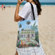 Genießen Sie den sonnigen Stil in dieser lebendigen Strandtasche! Mit einer Hütte aus Meeresschaum, Surfbrettern und schwebenden Palmen bringt diese Küstenstraße entspannte Strandvibes in den Alltag. Ideal für Strandtage, Marktläufe oder als Tasche für Ozeanliebhaber, die ein bisschen der Küste mit sich gewollt haben.