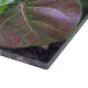 Das Schnittmuster auf diesem 15"x11" Schneidebrett, in natürlichen Farbtönen von Grüntönen, gedämpften Läppchen und einem Hauch von hellblau, wurde aus einem Originalfoto von HomeWare von Meerestrauben hergestellt, die entlang des Strandes wachsen. Das Foto ist eine Nahe, die zwei der fast runden Blätter zeigt, von denen eines noch ein hellgelb-grün ist, und das andere ein rötliches lila, während die Wintersaison näher rückt.