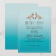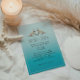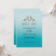 Designer Maura A. © für Sly Coconut Creative Designs. Eine von einer Hand gezeichnete Seelöwen; der Bräutigam trägt eine Bugs-Krawatte und die Braut trägt eine Halskette. Der Hintergrund ist ein aquamariner blauer Farbverlauf. Das Design ist modern und farbenfroh, perfekt für Tierfreunde, die überall heiraten, ob am Strand, am Boot, am Anlegeplatz, sogar im Zoo! Schriftart sind anpassbar.