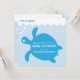 Babydusche Einladung für einen Jungen mit einem einfachen niedlichen Bild einer blauen, lächelnden Meeresschildkröte im Meer. Dieses Design ist eine Vorlage für Ihre einfache Anpassung.