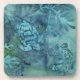 Set von 6 Untersetzer aus Korkgeflecht, hochglänzend, mit einem Bild eines blauen und grünen Batikkkaschs von Meeresschildkröten, die zwischen einer Fülle von Pflanze schwimmen. Siehe dazu passender Untersetzer und Servietten. Siehe die gesamte Sammlung des Untersetzer unter Wasser im NAHRUNGSMITTEL/BEV | Abschnitt "Untersetzer". Dieses Produkt ist nicht mit dem ursprünglichen Urheberrechtsinhaber verbunden oder verbunden.
