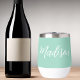 Un chic verre de vin monogramme personnalisé vert de mer pour une fille ou un gars qui aime des cadeaux simples et écrits à la main. Belle écriture cursive qui épelle votre nom dans la typographie moderne.