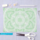 Dieses weiße Mandala sitzt auf einem weichen grünen Hintergrund. Die Farben sind ruhig und kreativ. Teil der Sammlung Bardh Mandala.