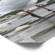 Das Poster zeigt eine ruhige Szene an der Küste, wo eine Möwe an der Küste spaziert und die Wellen sanft zu seinen Füßen klatschen. Das Wasser hat eine schimmernde Qualität, da das Sonnenlicht von seiner Oberfläche reflektiert wird. Man kann verschiedene Muscheln sehen, die sich verstreut, halb im Wasser eingetaucht und die natürliche Schönheit der Umgebung noch verstärken. Die Möwe im Vordergrund steht im Mittelpunkt des Posters, atemberaubend detailgetreu eingefangen. Sein Auge ist besonders auffallend und vermittelt ein Gefühl von Ruhe und Kontemplation, während er seine Umgebung erkundet. Die Möwe ist seitlich an der Kamera positioniert, was eine volle Wertschätzung seiner aufwändigen und zarten Eigenschaften ermöglicht. Dieses Plakat fasst den Kern eines friedlichen Strandtages zusammen, an dem die Natur in vollen Zügen zu sehen ist. Die Details und die ruhige Atmosphäre machen es zu einer wunderschönen Ergänzung zu jedem Raum, um in jedem Zimmer ein Gefühl von Ruhe und Ruhe zu schaffen.