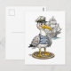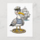 Illustration of a seagull dressed as a sailor, standing on coiled rope with a sailing ship in the background. Maritime setting with nautical elements and expressive character design.
