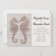 Faire-part de mariage de cheval de mer avec arrière - plan de bois flotté / bois. Les noms du couple et le texte de l'invitation sont faciles à customiser sur un panneau blanc. Papier hippocampe de mariage de plage dans des tons neutres, avec des éléments design de part et d'autre. Un design mignon pour les amoureux du plaisir qui aiment la mer.