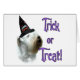 Wird es dieses Halloween Tricks oder Treats sein? In unserem Urlaubsdesign tragen Sie Ihre Lieblingshunde, die Sealyham Terrier, mit einem Hexenhut. Fügen Sie ein wenig 'Hocus Pocus' zu All Hallows' Eva in diesem Jahr hinzu!