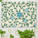 Seamless floral pattern with blue flowers, green leaves, and twisting vines on a light beige background. The design is lively and decorative.