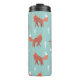 Seamless illustration pattern with cute orange foxes on green background. Nice woodland animals in trendy scandinavian style.