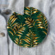 Seamless pattern of gold, jewelry, shiny fern branches and leaves on green, woodland, textured background. Golden fern.