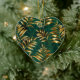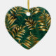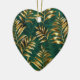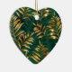 Seamless pattern of gold, jewelry, shiny fern branches and leaves on green, woodland, textured background. Golden fern.