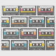 Seamless pattern with retro cassette tapes in doodle style. Vintage colorful baclground music