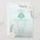 Une invitation à la fête d'anniversaire avec un arrière - plan à l'ombre d'aqua avec des illustrations d'étoiles de mer, d'algues, de fleurs et de dollars de sable en haut à droite et en bas à gauche avec coquillage au centre. Personnalisez le texte.