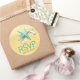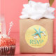 Aqua starfish, coquillage, corail et dollar de sable sur plage de sable étiquette RSVP pour un mariage de destination plage.