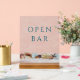 Meeresthematisches Acrylzeichen "Open Bar" mit Muschelgrenzen. Ein Wasserbild ist der Hintergrund für benutzerdefinierten Text. Tief blaue Schriften werden in Großbuchstaben gezeigt und können auch sagen: "Danke" oder "Karten und Geschenke", oder "Nimm eins". Tropische Muscheln und Seesterne und Sand Dollar sind Teil des Bildes. Empfang-Tische für die Gäste. Wählen Sie eine beliebige Größe aus.