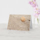 Seashell on the beach. Spiral seashell in sand. Photo card.