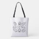 Eine Tasche mit einem Design von Joabt. Das Design zeigt Muscheln, die in einem Muster angeordnet sind.