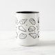 Eine Tasse mit einem Design von Joabt. Das Design zeigt Muscheln, die in einem Muster angeordnet sind.