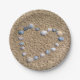Ein Herz ausgebreitet in den weißen, beige und grauen Seashells im goldenen Sand eines Strandes in der Sonne.