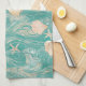A serene coastal pattern kitchen towel featuring swirling turquoise waves, shimmering seashells, and starfish for a breezy ocean aesthetic. The design blends soft pastels with flowing wave textures, creating a dreamy beach-inspired look. Ideal for ocean lovers, summer décor fans, beach-themed gifts, and anyone who adores coastal style.