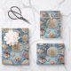 Dies ist ein Muster verschiedener Muscheln auf blauem Korallenhintergrund.