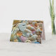Ein Bild von Muscheln bedeckt die Vorderseite dieser weißen Notenkarte. Geschlossene Notizen, um in Touch mit Freunden von Ihrer Hütte am Strand behalten.
