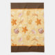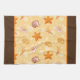 Dieses Küchentuch ist auf einem weißen Handtuch ausgestellt und zeigt Muscheln in orangefarbenen Tönen mit einem unteren Rand in Kakaobraun und einem orangefarbenen Streifen. Passen Sie dieses Objekt an oder kaufen Sie es wie gezeigt. Vektor mit freundlicher Genehmigung von www.all-free-download.com