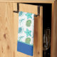 Dieses Küchentuch ist auf einem weißen Handtuch ausgestellt und zeigt Muscheln in den Farben Blau und Grün. Tief blauer Rand mit dünner Wasserlinie an den unteren Rändern. Passen Sie dieses Objekt an oder kaufen Sie es wie gezeigt.
