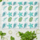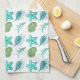 Dieses Küchentuch ist auf einem weißen Handtuch ausgestellt und zeigt Muscheln in den Farben Blau und Grün. Passen Sie dieses Objekt an oder kaufen Sie es wie gezeigt.