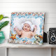 A pretty, beach-themed, standing photo template frame for a baby or young child. Starfish and sea turtle design on 8x10 inch, horizontal frame with easel. Colorful seashells and splashing waves create the frame around your child's photo, which must be uploaded before purchase. Your photo will be permanently added to this frame. It is perfect to use for a child of any age from newborn to pre-teen. Set the frame in their room, create for a parent or grandparent, record a special event and personalize further with text along the top.