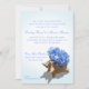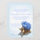 Seashell mit einer hübschen Eisblauen Hydrangea auf diesem Strand Hochzeitseinladung. Personalisieren Sie Text wie gewünscht.