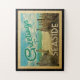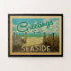 Dieses Greetings From Seaside Vintag Postcard Design verfügt über einen Sandstrand mit einem schönen türkisfarbenen Ozean Wasser und über dem Meer, einem blauen Himmel mit billigen weißen Wolken. Im Vintage Reisen Stil.