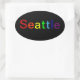 Ovaler Aufkleber mit Seattle in Regenbogenfarben.